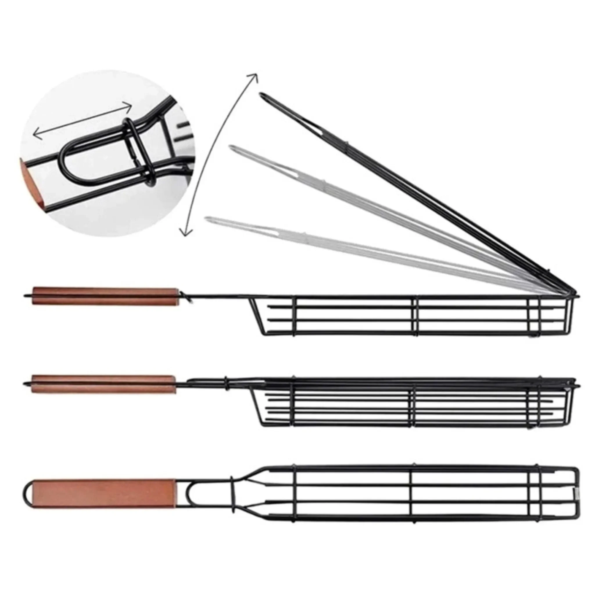 Verschließbar • Antihaft • Metallkorb mit Holzgriff • Ideal für Gemüse, Fisch & Fleisch