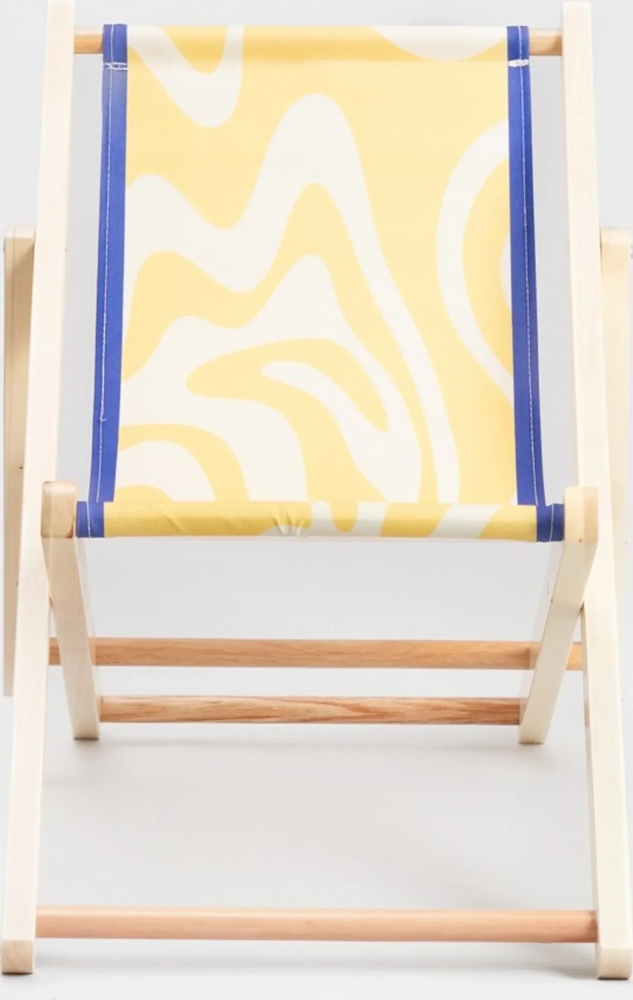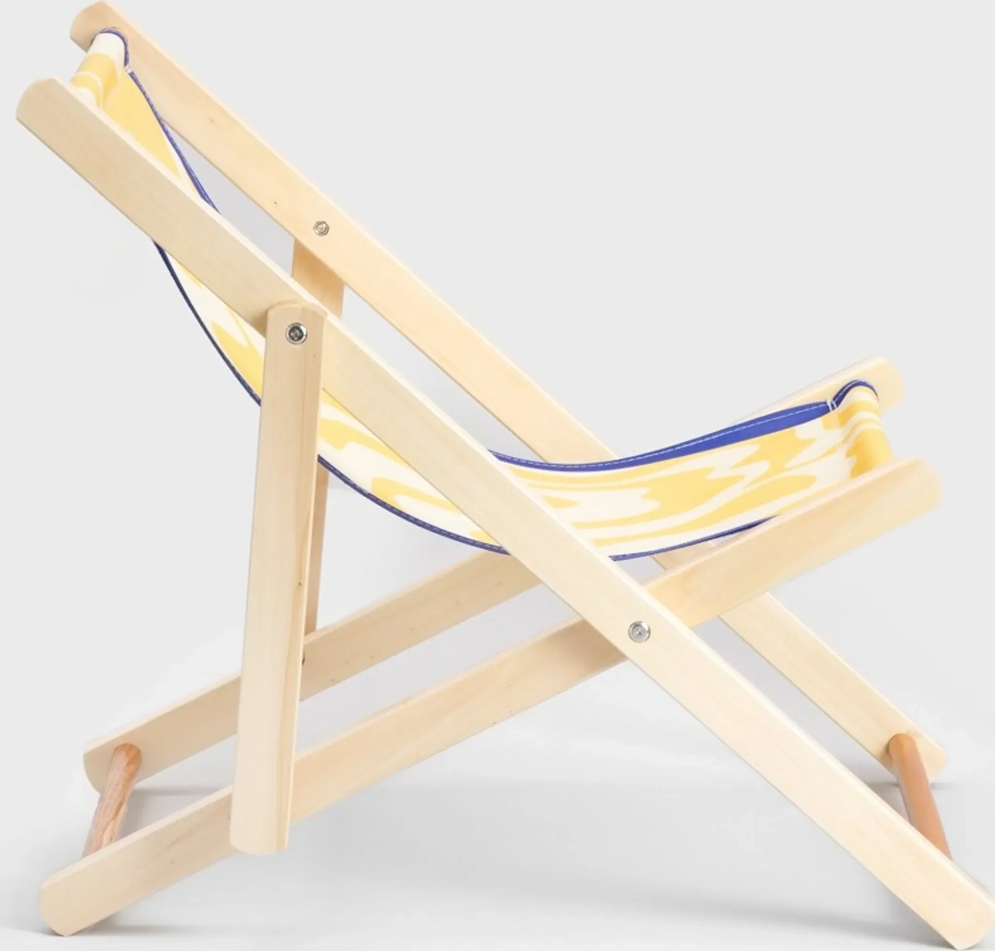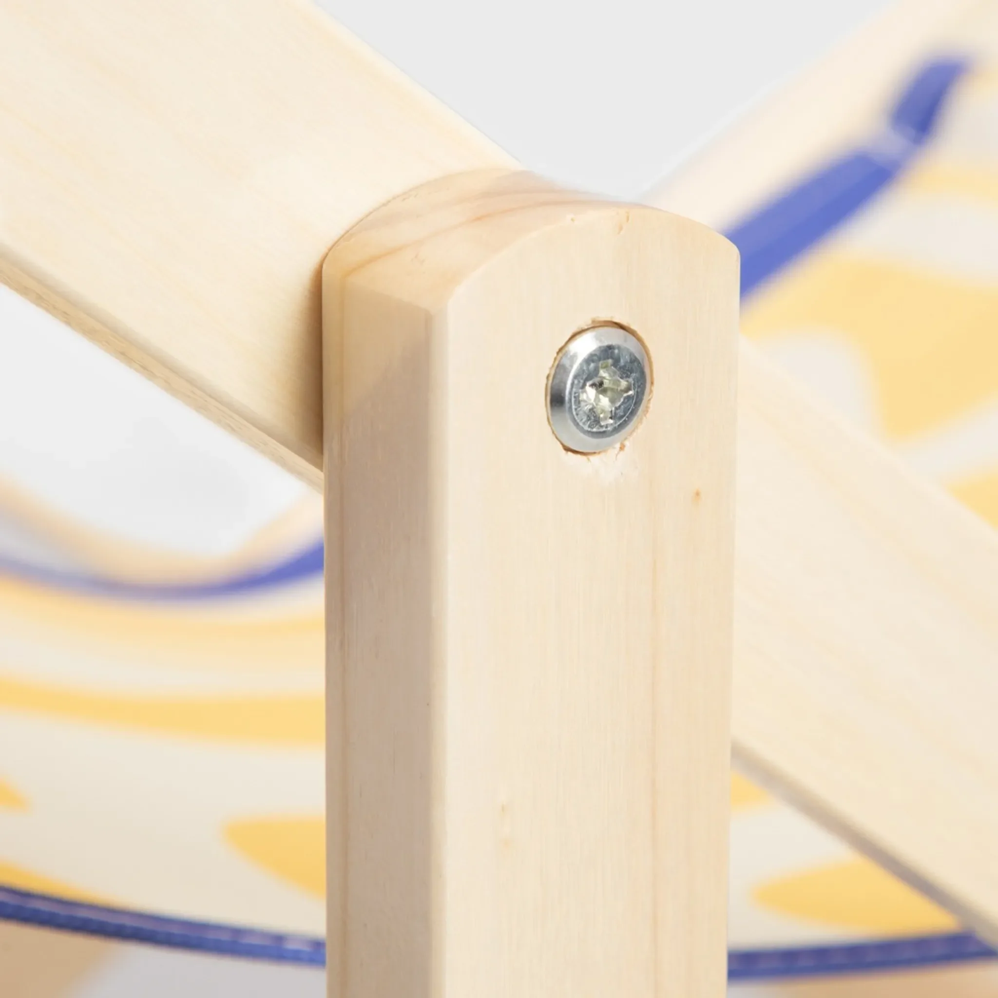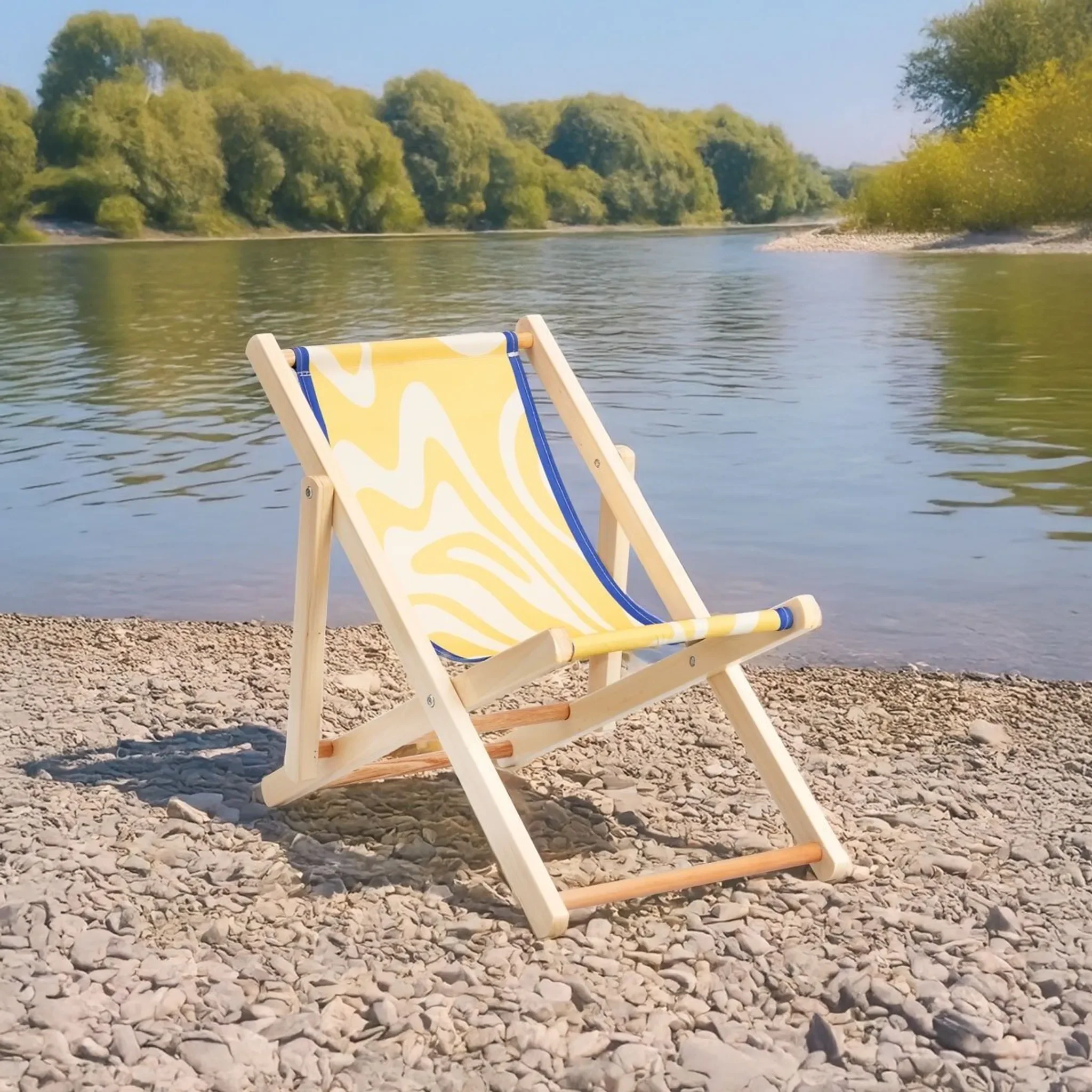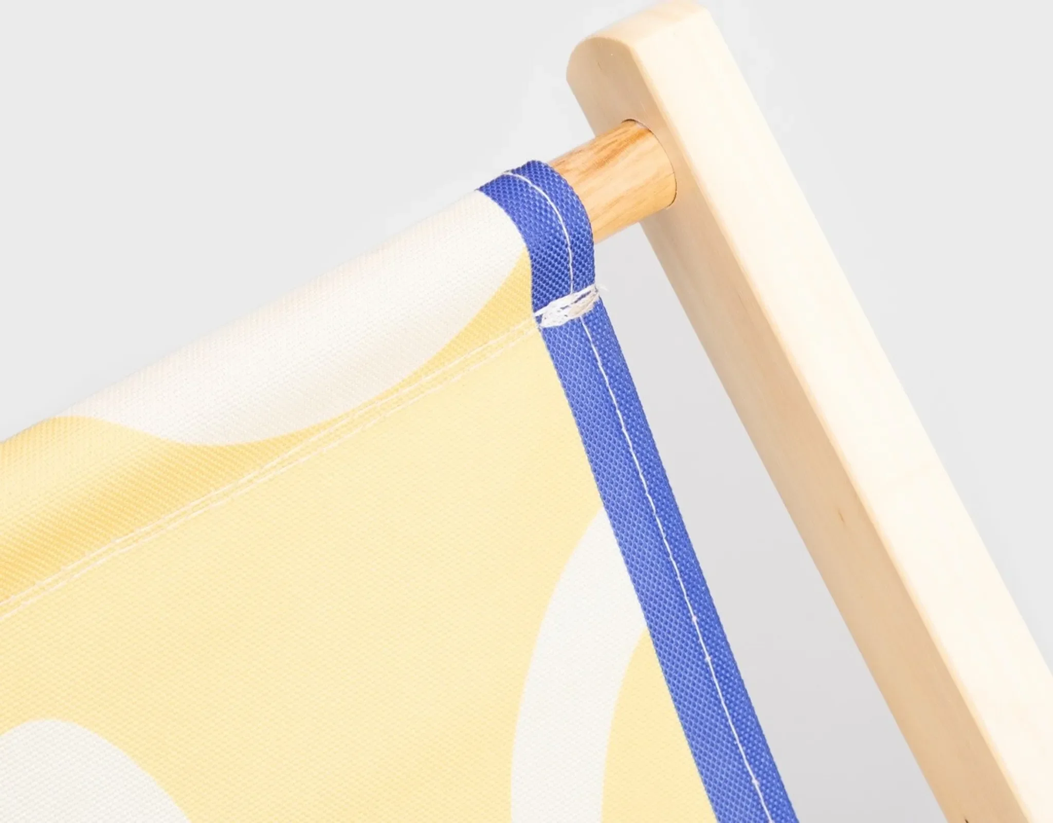 Die Mini-Holzliege aus der HOMLA „Color Mosaic“-Kollektion vereint farbenfrohes Design mit praktischer Funktionalität. Die leuchtenden Gelb- und Weißtöne des Sitzgewebes sorgen sofort für Sommerstimmung und machen die Liege zu einem dekorativen Highlight auf Balkon, Terrasse oder im Garten.