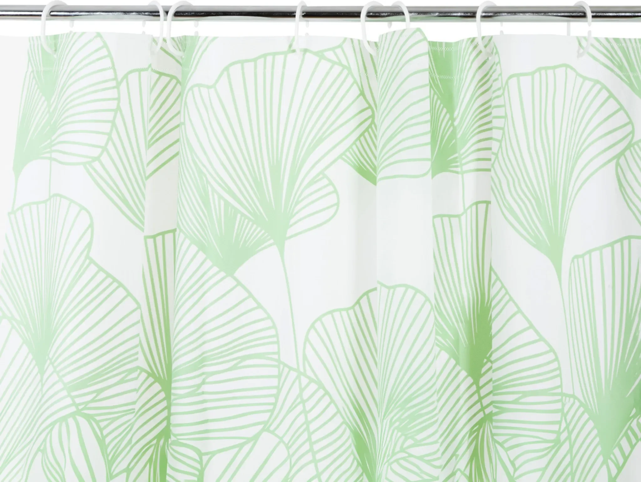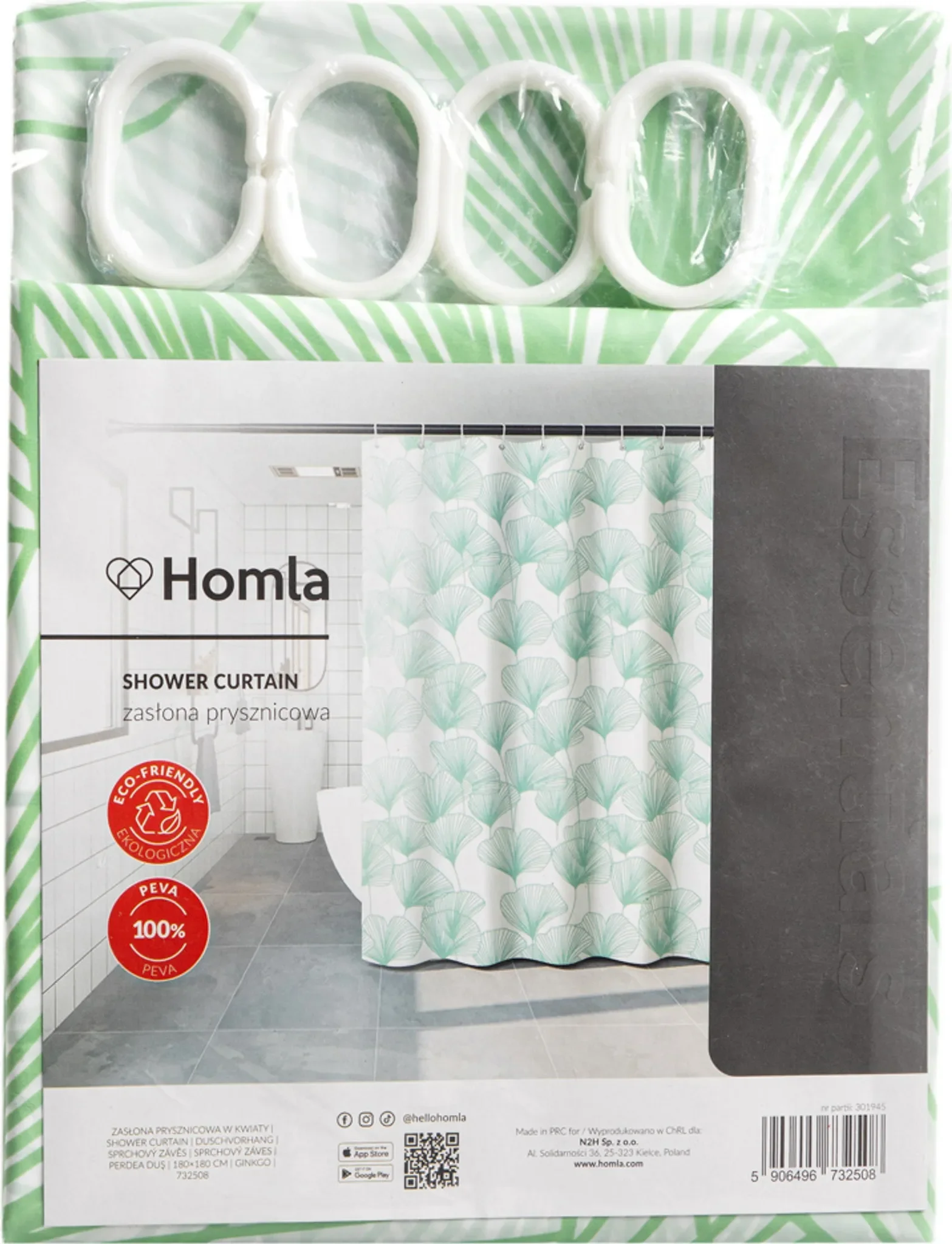 Der HOMLA GINKGO Duschvorhang vereint modernes Design mit Funktionalität. Das florale Muster in Grün-, Weiß- und Beigetönen verleiht Ihrem Bad Stil und Eleganz, während der Vorhang zuverlässig vor Spritzwasser schützt.