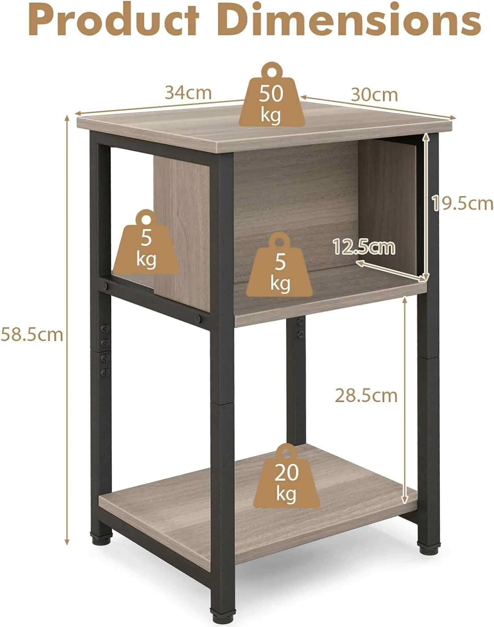 KOMFOTTEU 3-stufiger Nachttisch / Beistelltisch – 34 x 30 x 58,5 cm
