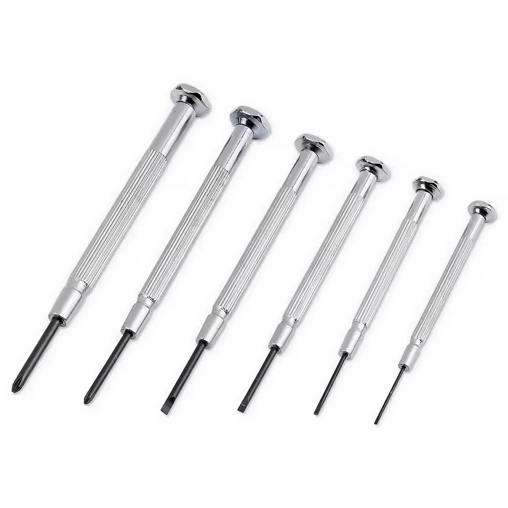 Kompaktes 6-teiliges Schraubendreher-Set von Kreator, ideal für Feinarbeiten wie Uhrmacher- oder Modellbauarbeiten. Die Präzisionsschraubendreher bestehen aus robustem Chrom-Vanadium-Stahl und werden in einer praktischen Kunststoffkassette geliefert.