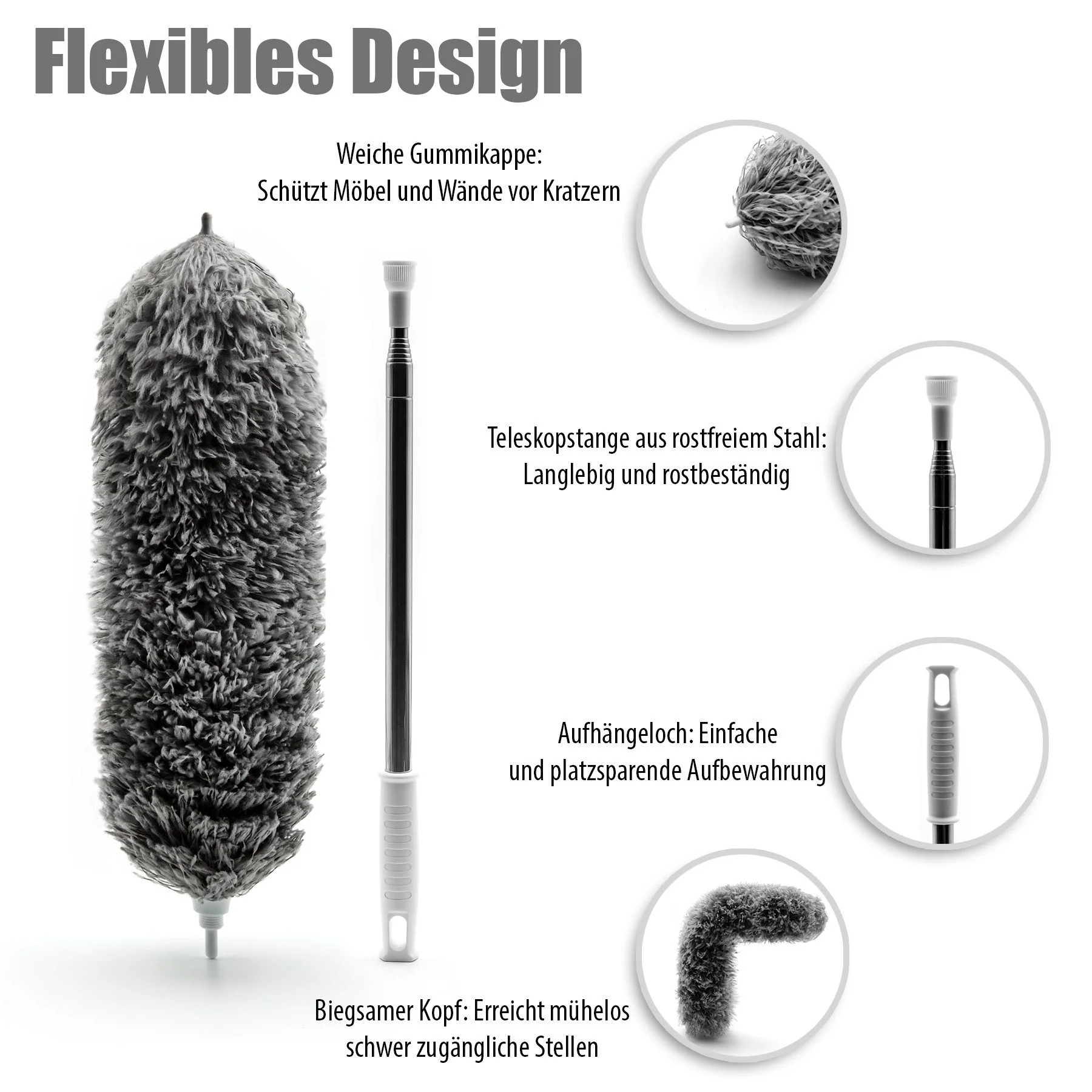 Produktinformationen "Staubwedel Teleskop ausziehbar – waschbar & effizient gegen Staub & Spinnweben"