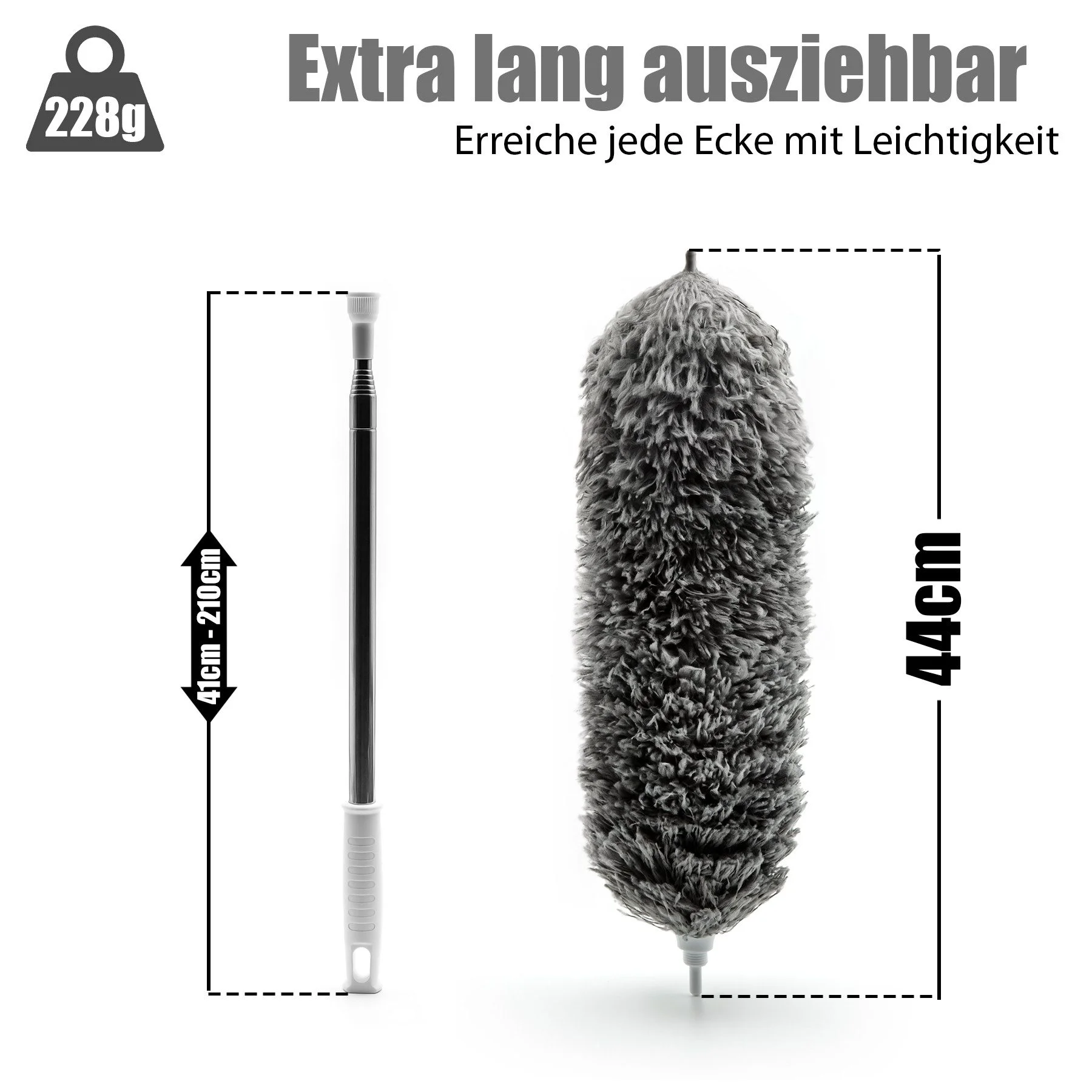 Mikrofaserkopf • Ausziehbar bis zu 210 cm • Waschbar & wiederverwendbar • Für Haushalt & Büro