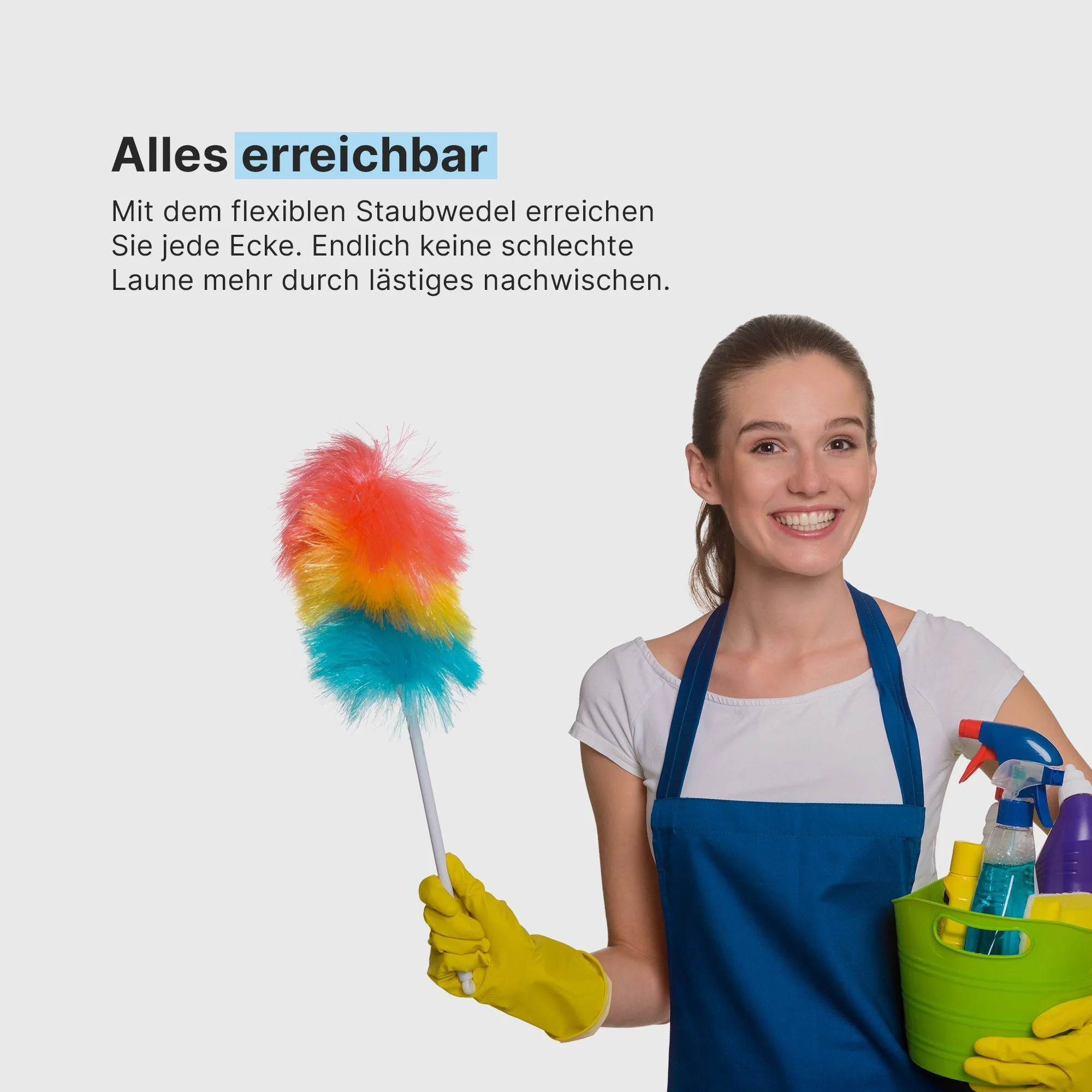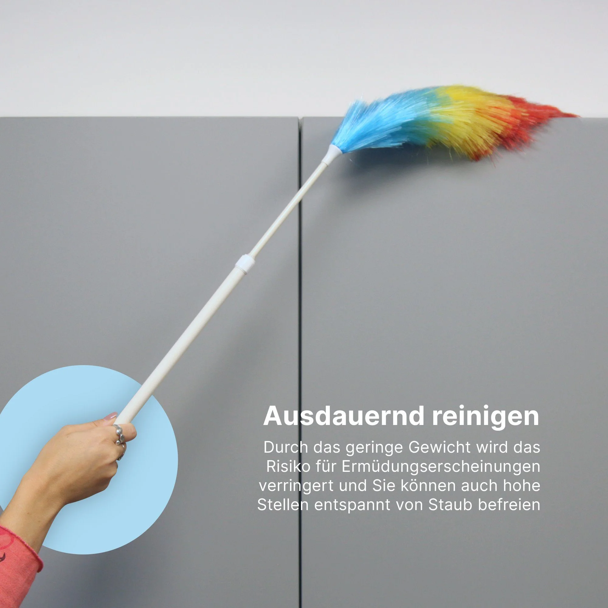 | Einsatzbereich | Haushalt, hohe Möbel, Lampen, Ecken, Spinnwebenentfernung, empfindliche Oberflächen |