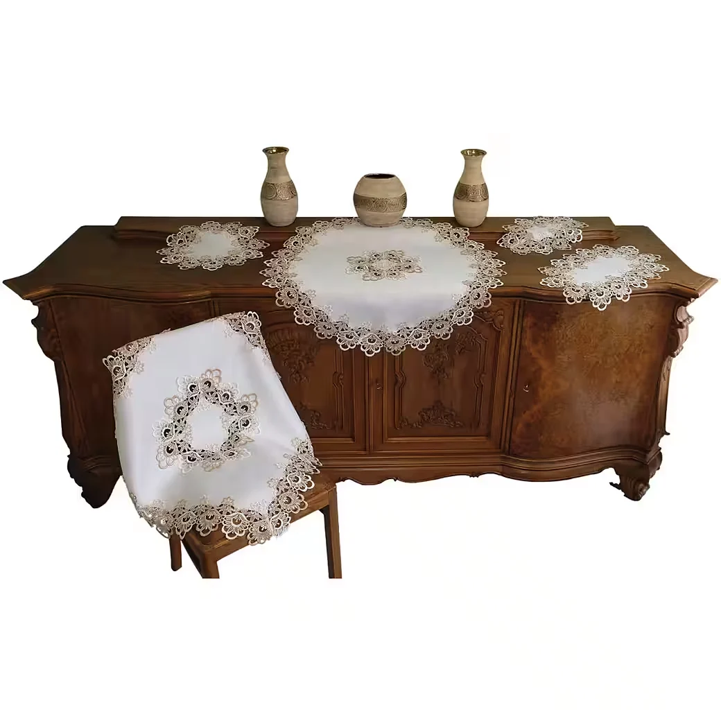 Elegantes Deckchen aus 100% Polyester in Ecru-Beige für Kommoden, Tische & Sideboards