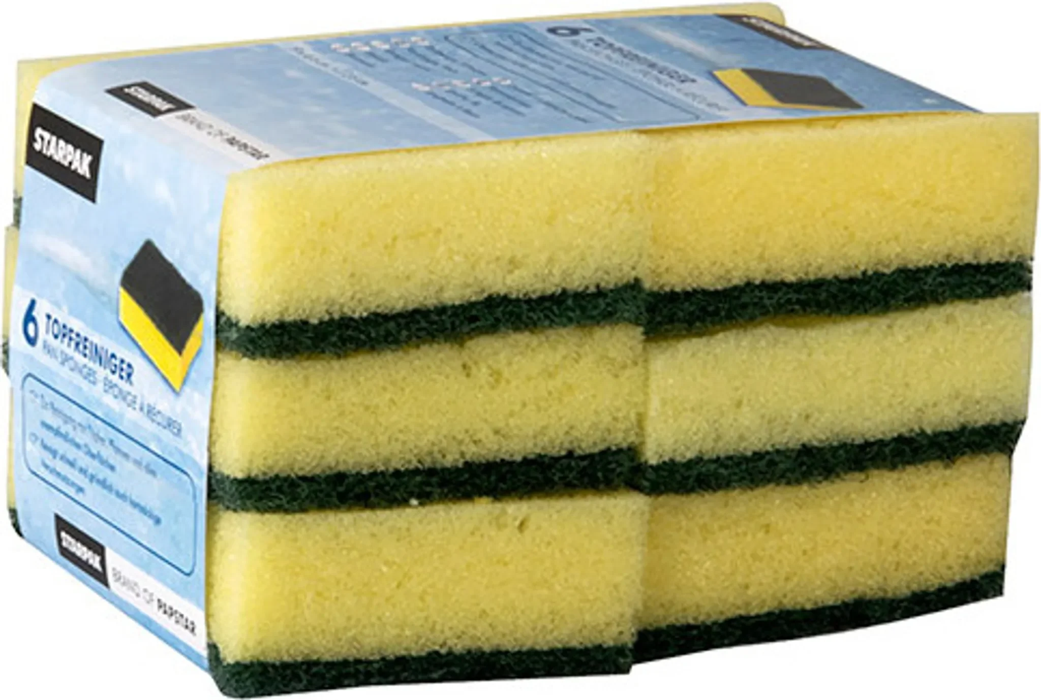 Topfreiniger 6er-Set – Eckige Schwämme 9×6,6×2,6 cm, gelb/grün